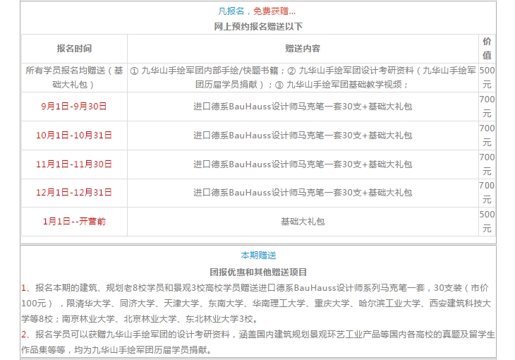 7、快题设计全年班是(A+B)+C课程+国庆方案冲刺班+春秋或者秋季网课快题班,即表现A+B班+快题方案C班,寒假班任选一期表现班,快题方案C班可根据自己时间安排,一年有效,方案班上课前需要提前一个月预约;适合需要系统提升快题设计能力学员;适合准备大三和准备次年考研学员,跨专业及方案设计能力比较薄弱的学员和0基础学员;